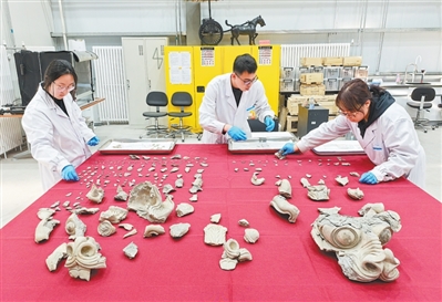 可以看出,唐代工匠在制陶、彩绘工艺、雕塑技艺方面都达到了非常高的水平。不过,面对上百块龙首碎块,如何拼接也是很大的挑战。