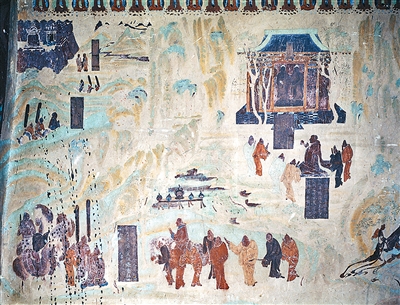 莫高窟第323窟的张骞出使西域图。新华社发