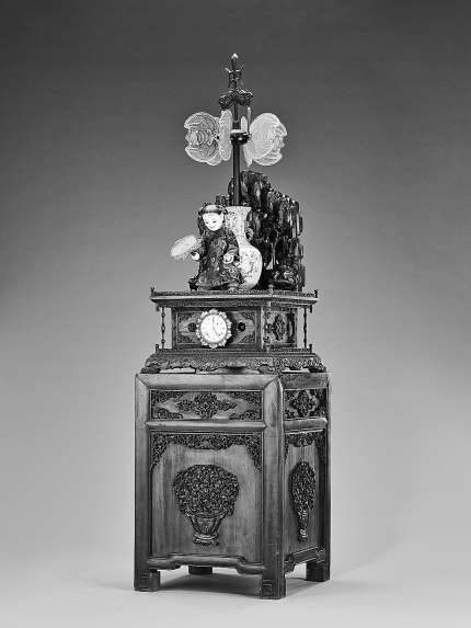 故宫博物院藏清乾隆时期的红木人物风扇钟就有类似特点。该钟由上中下三部分组成,下部为箱座,内可放物品;中部为时钟,通过发条转动可带动指针计时;上部则为手持桃形扇子的童子及立于童子背后的大风扇。当时钟走动时,带动童子上下挥动扇子,并带动大风扇水平转动,在夏天可产生较好的清凉效果。本版图片周乾 提供