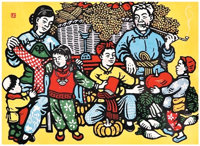 丰衣足食图(套色木刻年画)力 群作
