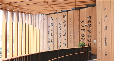 在中国馆设计中,竹子既是低碳材料,更是中华文化的载体,其承载了竹简记录文明的智慧,体现了“天人合一”的哲学与坚韧、高洁的民族品格。“中国馆外立面镌刻的诗词与书法,以竹为媒传递汉字之美,展现中华文明生生不息的精神密码。国际舞台上,竹文化以可再生、低碳属性诠释中国绿色发展理念,通过‘中华书简’的建筑与园林意境,促进跨文化对话,向世界传递和谐共生的生态智慧,彰显传统与现代融合的中国方案。”孙建超说。