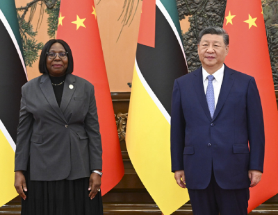 2025年2月25日,云南省昭通市绥江县,新市金沙江特大桥施工现场,工人正加紧施工。