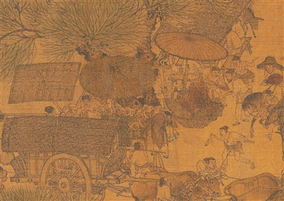 《清明上河图》中所描绘的京师街头疑似卖胡饼的摊位