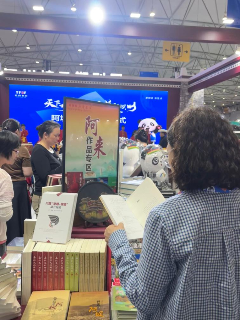 10月17日至10月20日,2025天府书展在成都世纪城会展中心举行。在公园般的展陈氛围中,阿坝藏族羌族自治州展区以“阅览+体验”模式吸引众多读者驻足。展区入口陈列《阿坝藏族羌族自治州交通旅游图》《中国国家地理》阿坝州特刊及《嘉绒文化研究》等书籍,为读者提供信息引导;内部设置了非遗集市,集中呈现阿坝州各个县的文化特色,包括藏族服饰、嘉绒藏族编织和桃花刺绣等工艺,营造出具有地方氛围的展示场景。非遗体验区内,传承人现场展示技艺,观众可亲手参与制作;展演区则通过歌舞表演,展现民族地域风情。阿坝藏族羌族自治州宣传部副部长余理胜表示:“我们希望通过书展,让更多读者了解大美阿坝。近年来,我们持续推进‘书香阿坝州’建设,让阅读成为连接文化与旅游的重要纽带。”