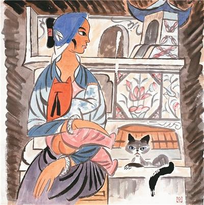 1960年,张仃带领中央工艺美术学院学生到云南采风,回校后创作了《苍山牧歌》《哈尼族女民兵》《集市傣女》等一批重彩装饰画,视觉冲击强烈。漫画家华君武看了这批作品后,称张仃的画是“毕加索+城隍庙”。“城隍庙”和“毕加索”,一东一西,一传统一现代,张仃却把它们巧妙地融合在了一起。