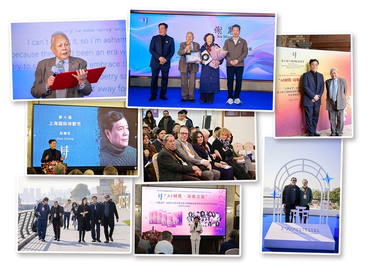 在活动现场,获得本届上海国际诗歌节“金玉兰”诗歌大奖的谢冕和与会的中外诗人嘉宾,以及上海本地诗人与读者欢聚一堂,对话互动,气氛热烈。与会诗人围绕本届国际诗歌节“AI时代诗歌之道”这一主题,以及AI时代的到来,对人类的诗歌创作,究竟产生了什么影响?诗人面对人工智能的挑战,应该如何继续保持本心,如何继续追求文学理想,开创诗歌创作的新局面等重要命题,各抒己见,发表了富有个性的精彩见解,收获丰富。