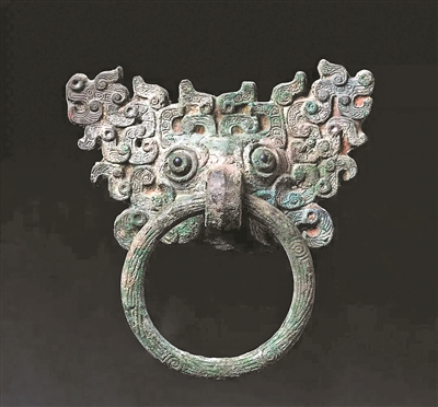 在考古发掘中,我们能看到很多战国墓葬里,有青铜铺首出土。比如在河北易县燕下都遗址,就出土过非常典型的战国时期的饕餮纹青铜铺首,造型已经非常完整,兽面狰狞,眼神凌厉,看着就让人心生敬畏。不过“铺首”这个名字出现得要更晚一些,最早的文献是《汉书》,其中有“孝元庙殿门铜龟蛇铺首鸣”的记载。“铺”有铺展、附着之意,“首”为门面之首,二字合一,准确表达了其作为大门视觉与精神核心的地位。