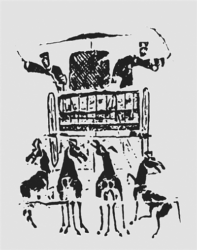 河南新野出土的汉画像砖上,驭者手举鞭子作指挥状,似乎在训练马驹跟车行进。 王仁湘供图