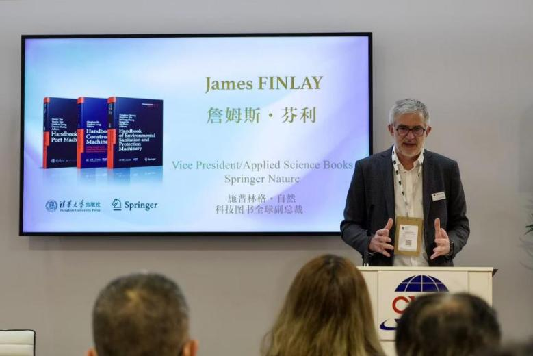 詹姆斯·芬利分享应用科学领域图书发展战略及与中国出版界的合作情况。他表示,通过与中国出版机构的深度合作,施普林格能把像“工程机械手册”这样源于中国的标准与方案,介绍给全球的专业读者。他特别向清华大学出版社团队的倾力付出与有力支持致以诚挚谢意,并表示,希望借助举办这次发布会,让手册更好地服务全球工程建设,拓展其专业影响力与社会效益。他强调,施普林格始终高度重视中国在应用科学领域的创新成果与技术突破,未来将持续深化合作,将更多中国方案,带给全球知识社群。