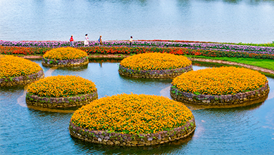 广西壮族自治区南宁市青秀山风景区丘石花园内繁花盛放。